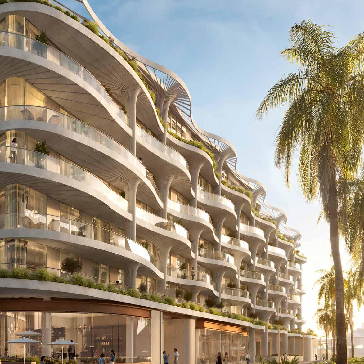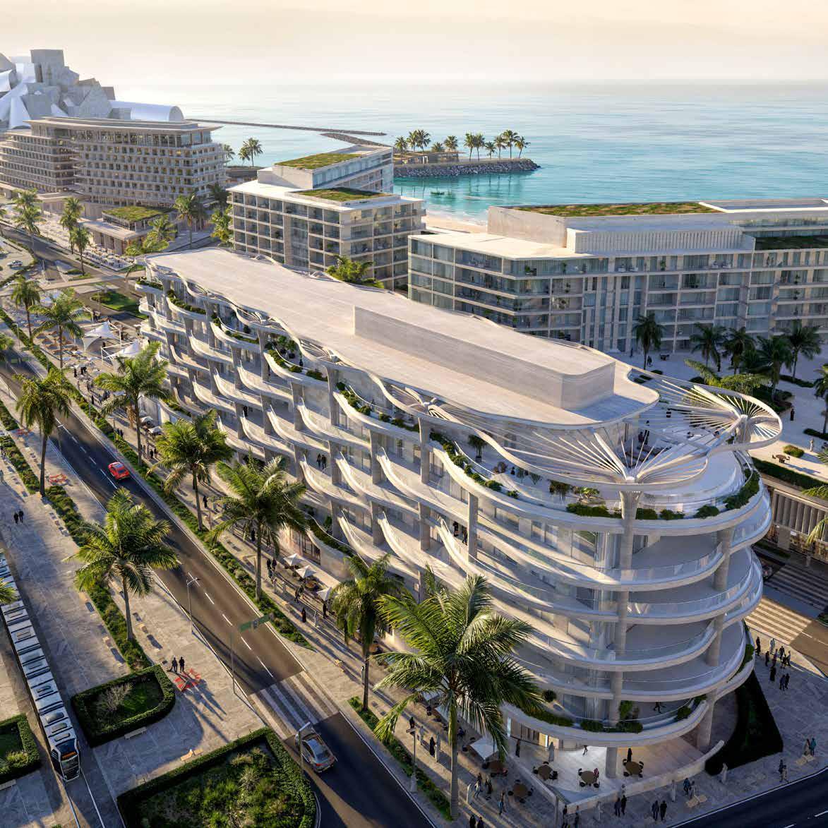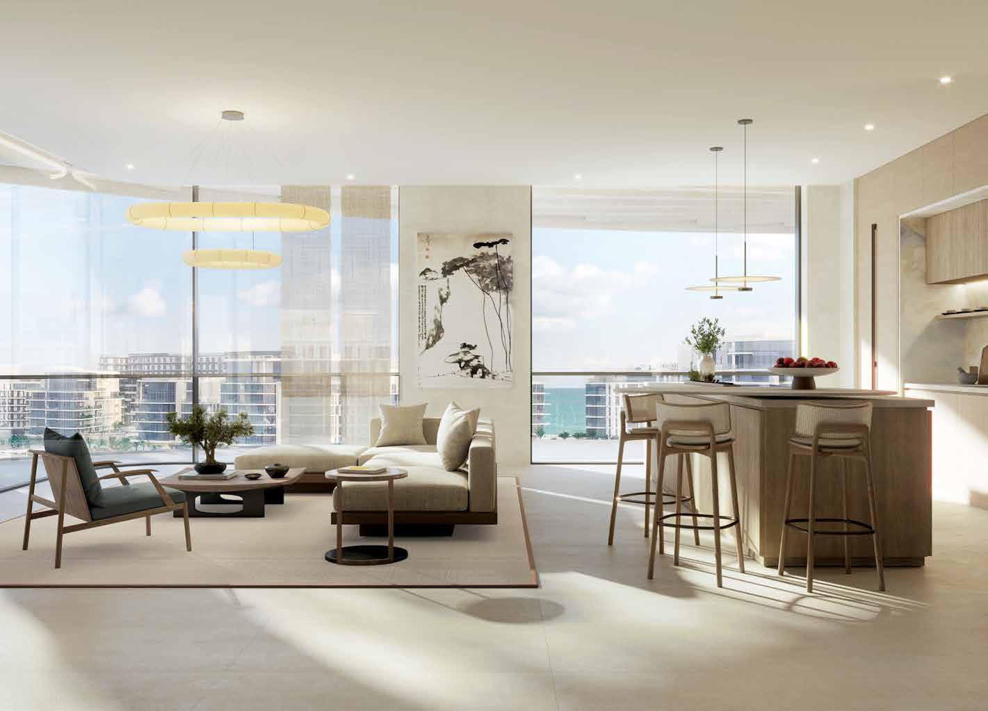 Mamsha Palm is an iconic project created in collaboration with world-renowned architect Koichi Takada, which brings nature back into the urban environment. Located in Abu Dhabi in the heart of Saadiyat Island, this 7-storey complex comprising of two basements, a ground floor and six residential floors offers 44 exclusive residences with 1-3 bedrooms, as well as three two-storey Japanese-style 4-bedroom sky villas with spacious layouts that offer breathtaking views of the Guggenheim Museum. Biophilic design, inspired by the protective canopy of palm trees that cools the environment, permeates the entire Mamsha Palm project. Each interior space has been designed to reflect the subtle beauty of Koichi Takada’s architectural concept. The materials and finishes contribute to an elevated lifestyle.