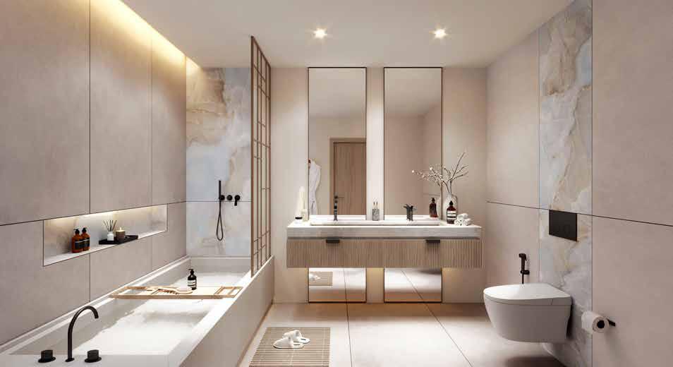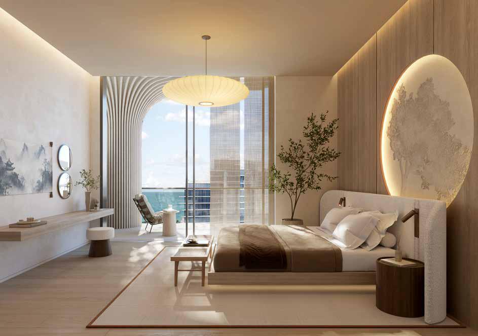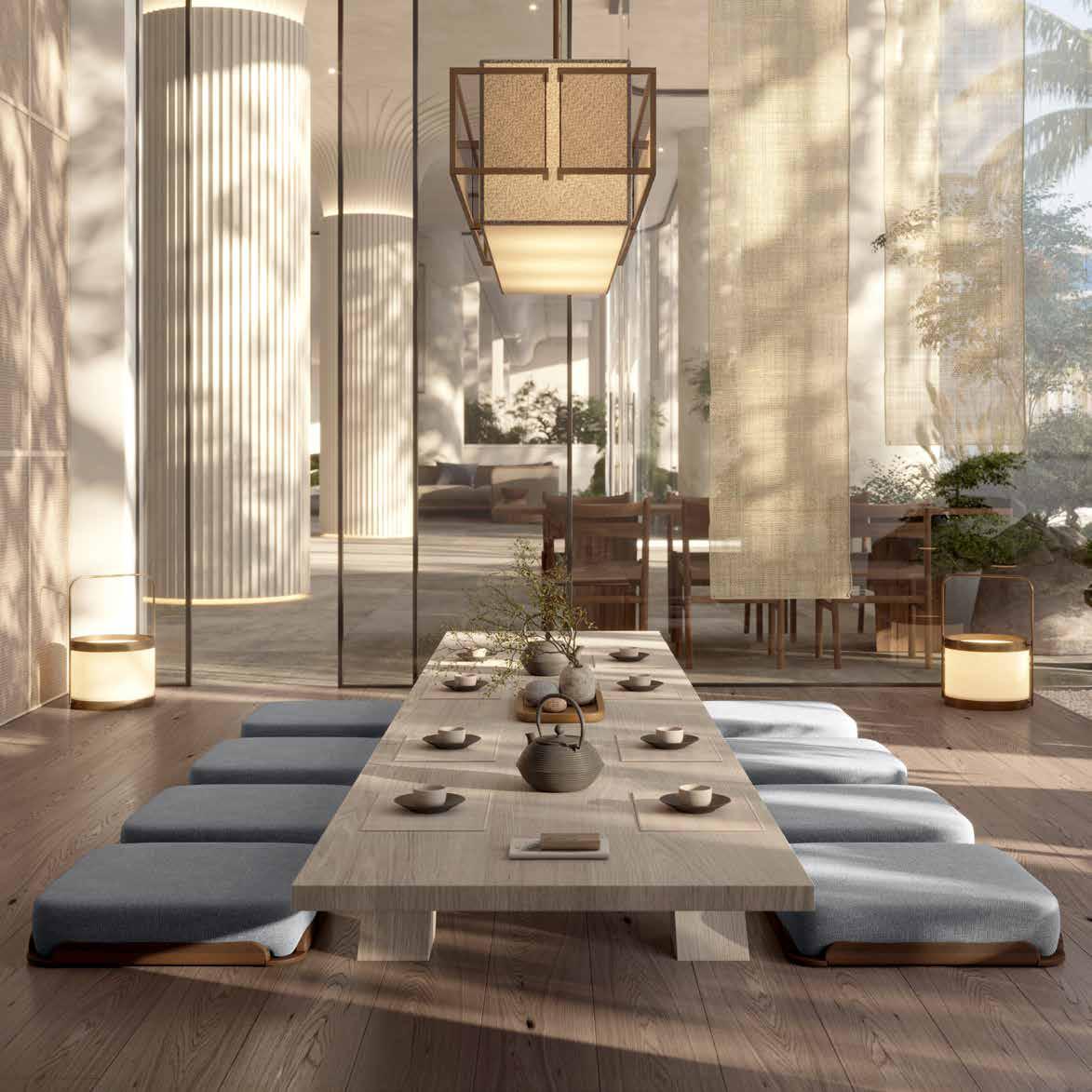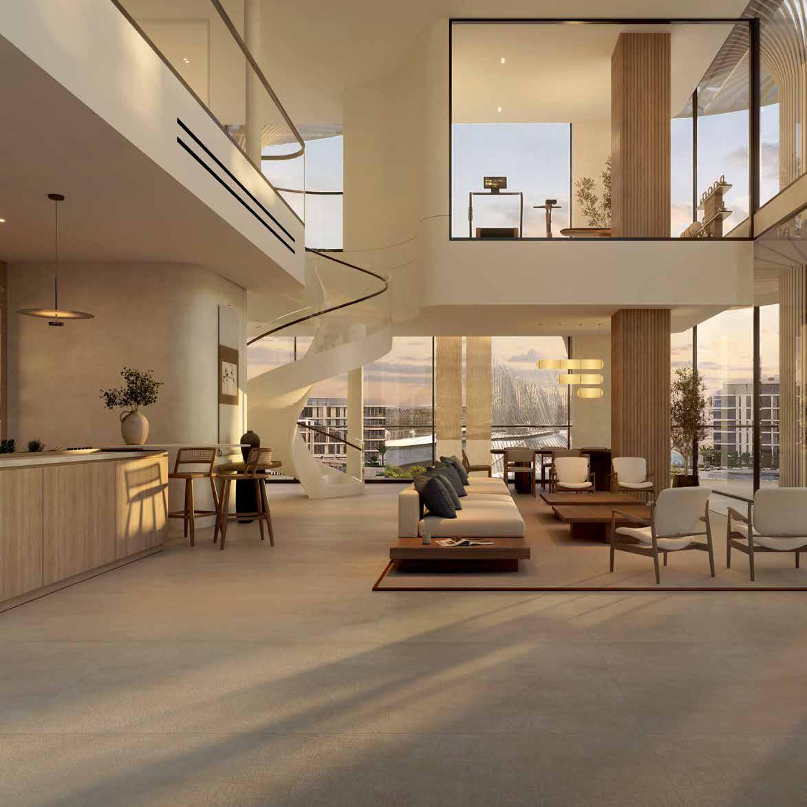 Mamsha Palm is an iconic project created in collaboration with world-renowned architect Koichi Takada, which brings nature back into the urban environment. Located in Abu Dhabi in the heart of Saadiyat Island, this 7-storey complex comprising of two basements, a ground floor and six residential floors offers 44 exclusive residences with 1-3 bedrooms, as well as three two-storey Japanese-style 4-bedroom sky villas with spacious layouts that offer breathtaking views of the Guggenheim Museum. Biophilic design, inspired by the protective canopy of palm trees that cools the environment, permeates the entire Mamsha Palm project. Each interior space has been designed to reflect the subtle beauty of Koichi Takada’s architectural concept. The materials and finishes contribute to an elevated lifestyle.
