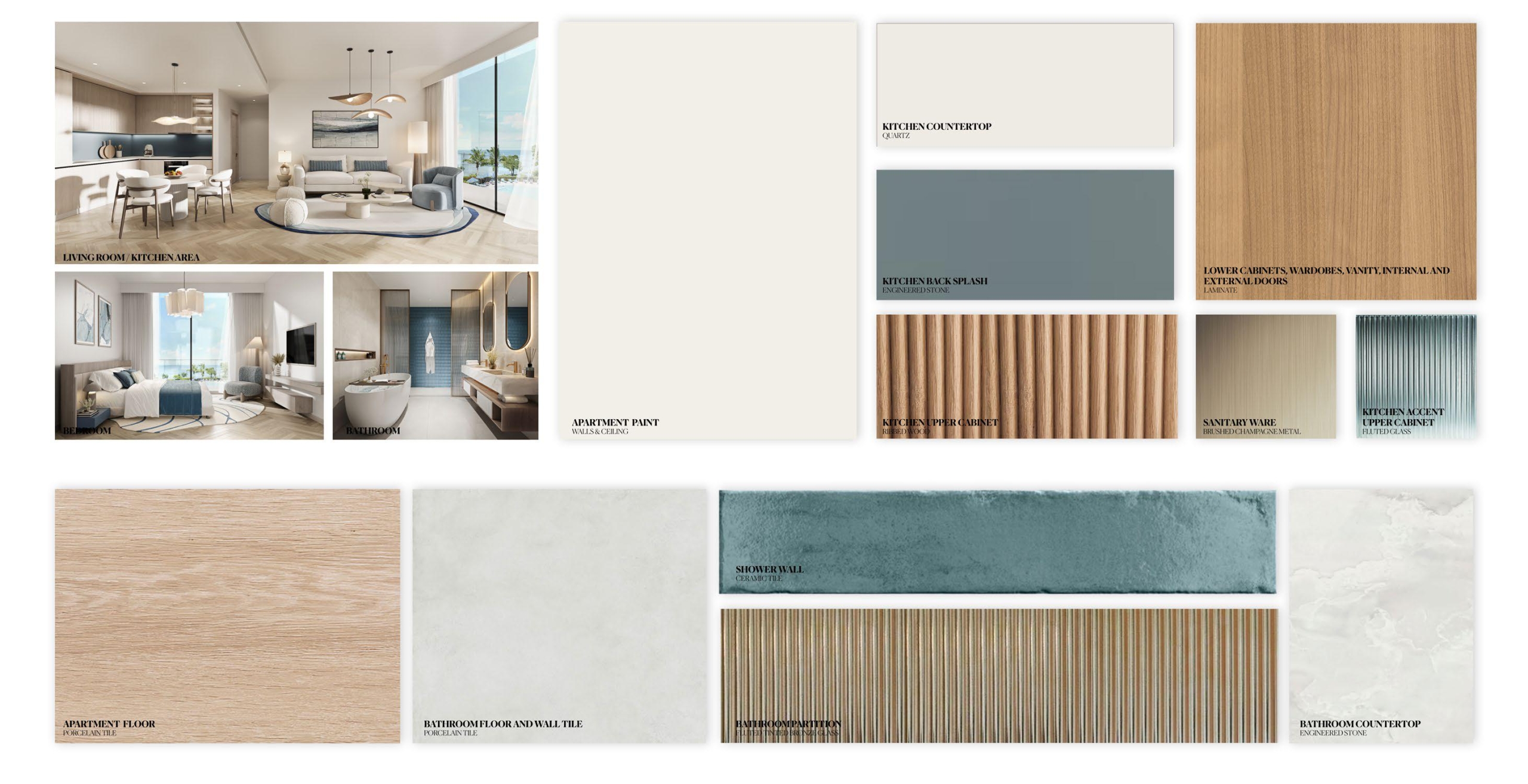 Nikki Beach Residences is a premium residential complex in Ras Al Khaimah from the famous developer Aldar Properties, consisting of three towers. One of them consists of 2 buildings connected by a common bridge (18 and 19 residential floors), the other two are separate (21 and 17 floors). A total of 803 residences are presented: apartments with 1–4 bedrooms, sky villas and sky terraces with five bedrooms. The design of buildings and interiors is made in beige, wooden, gray and metallic shades using wood, marble, as well as ceramic and porcelain tiles.
