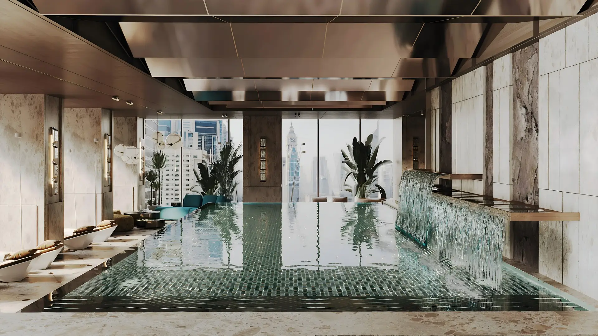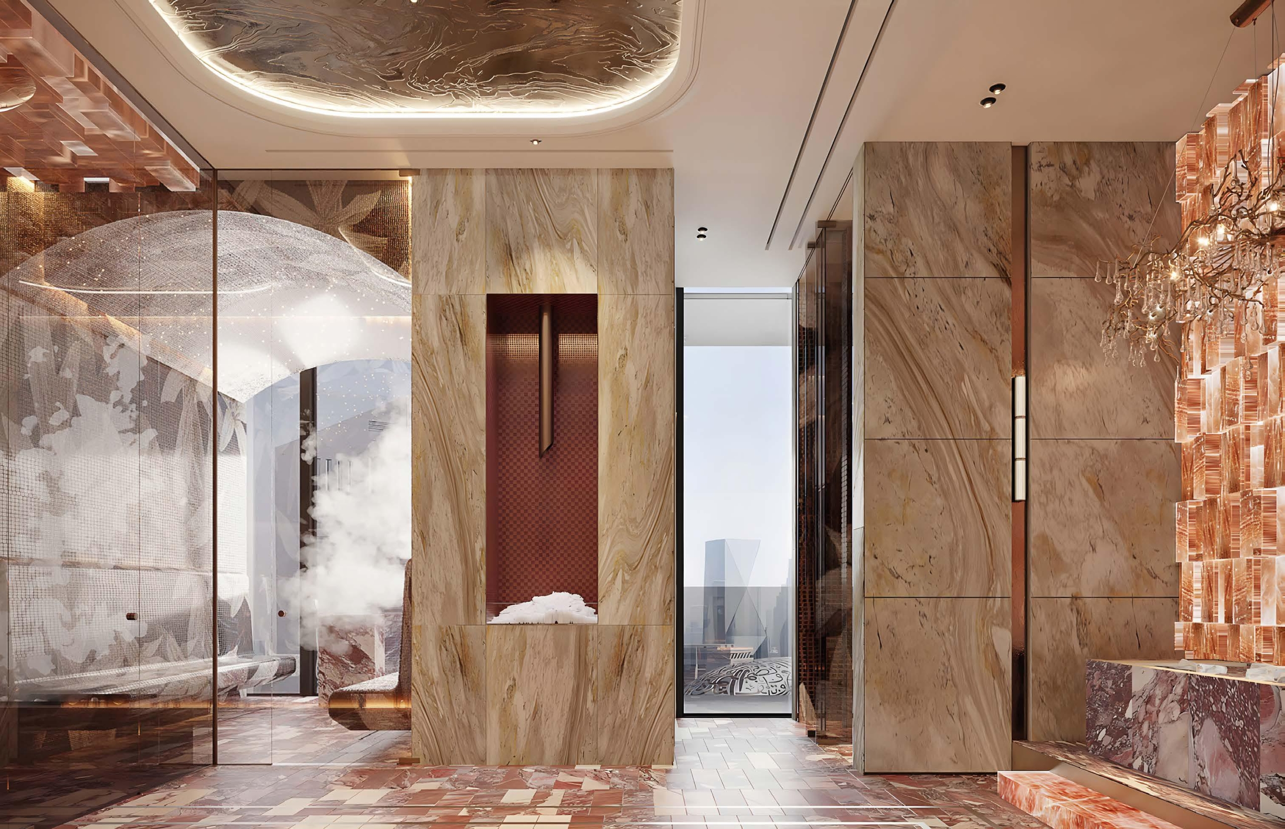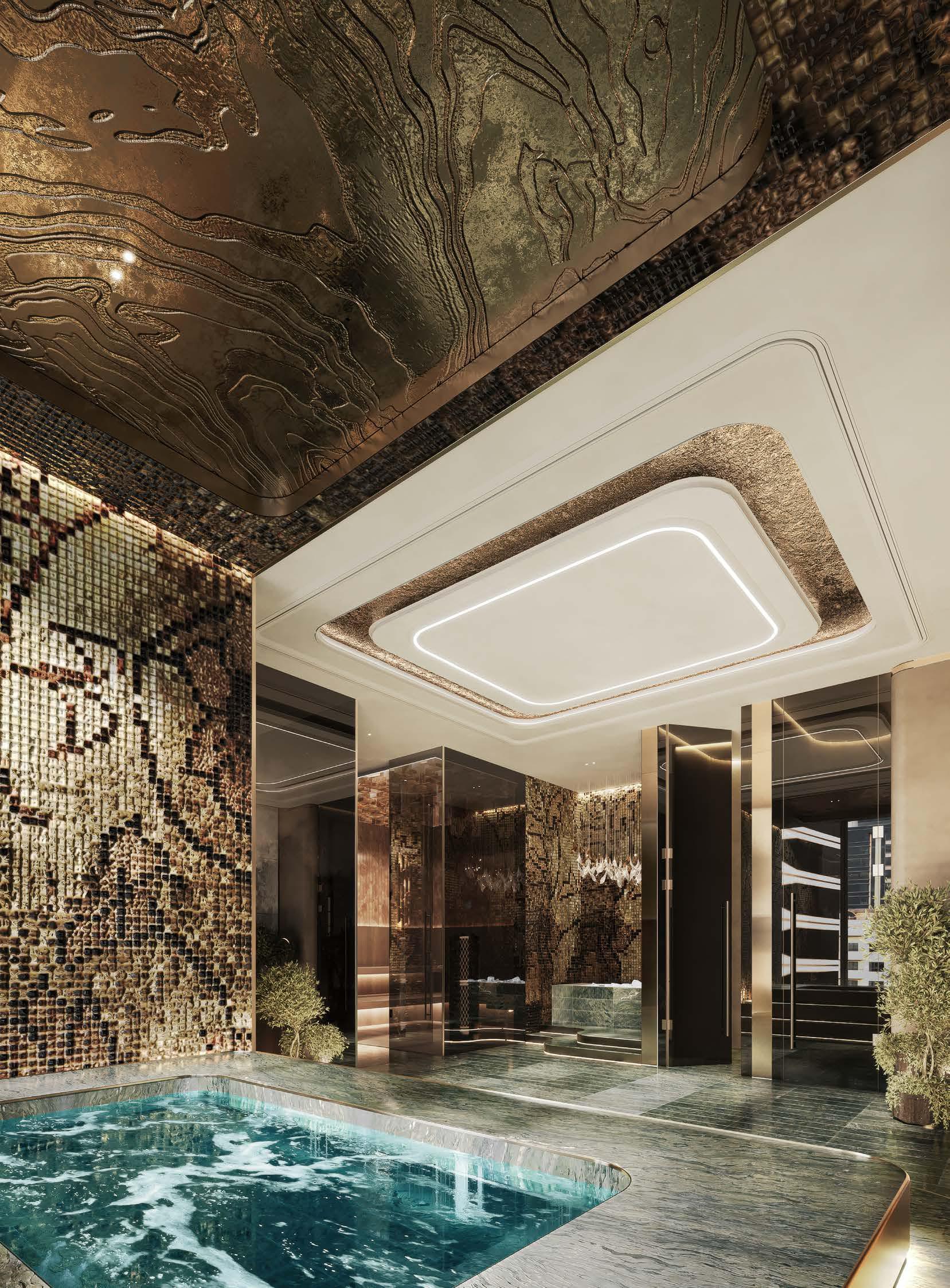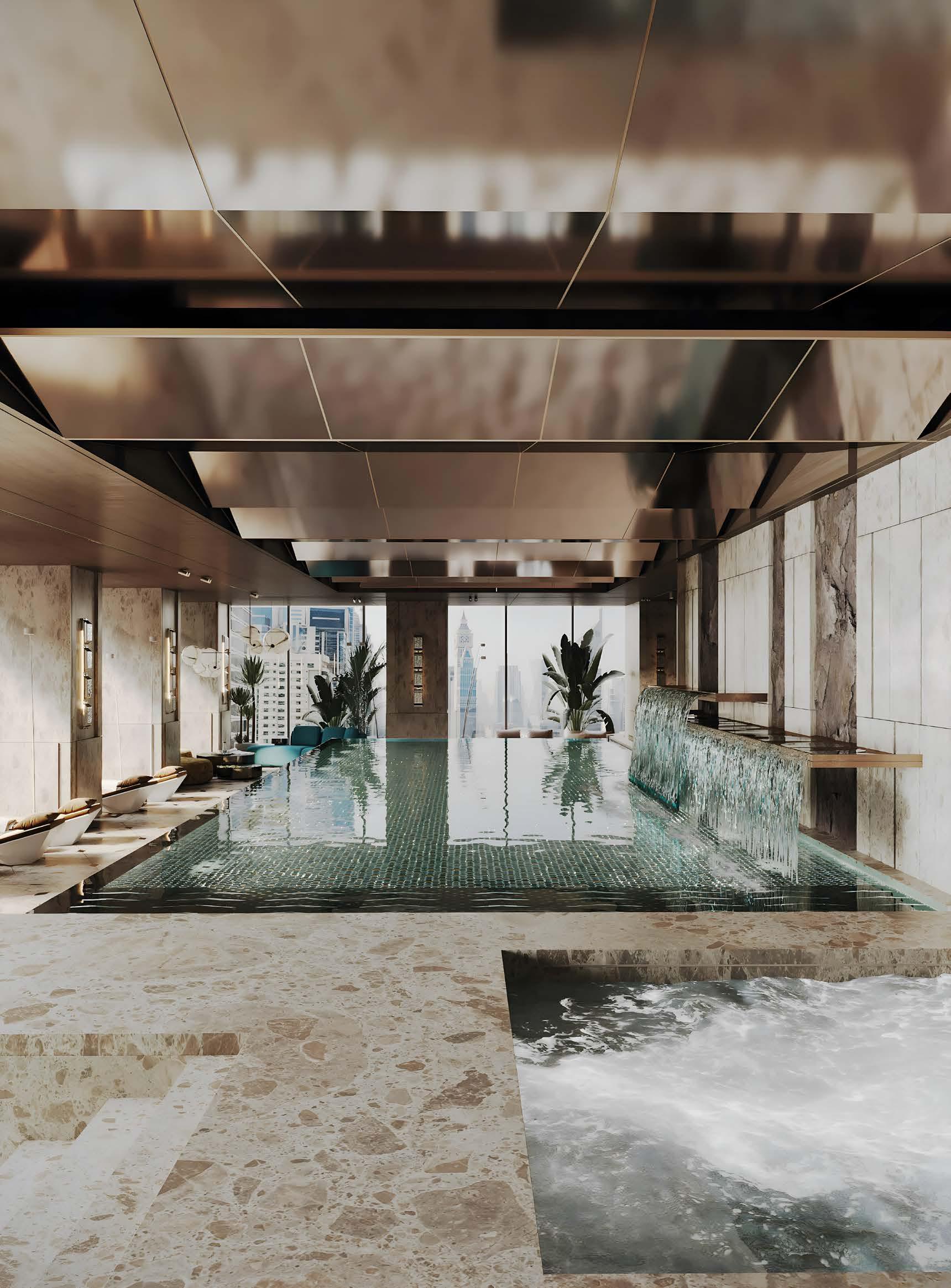 Amenities such as a swimming pool, gym, sauna, Jacuzzi, steam rooms, chess room and more are also featured.