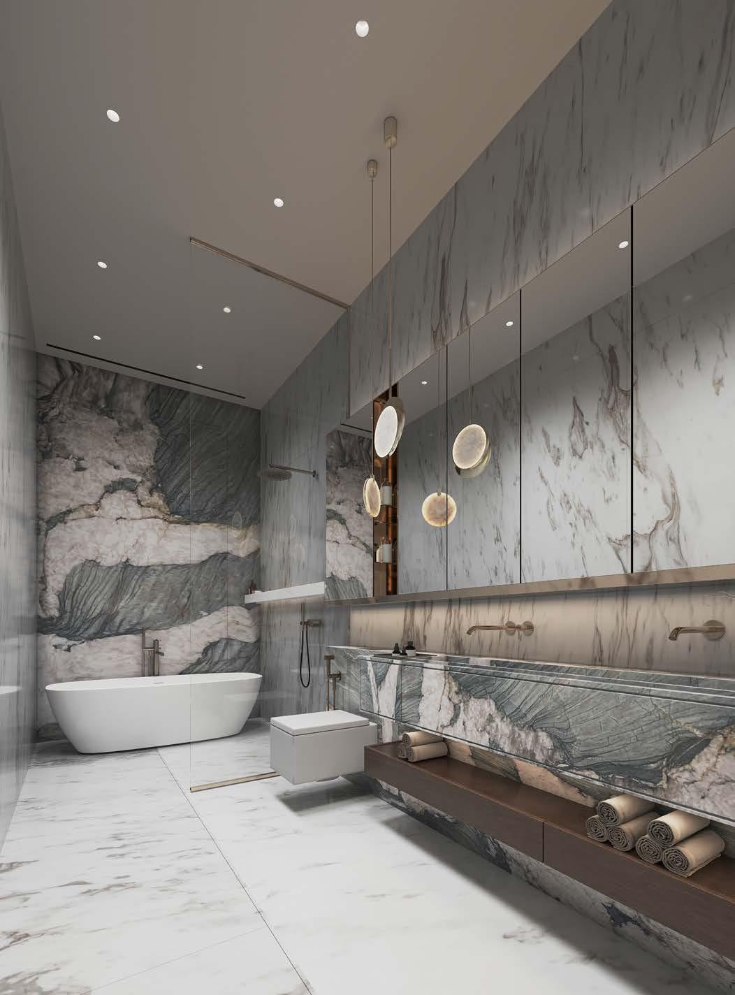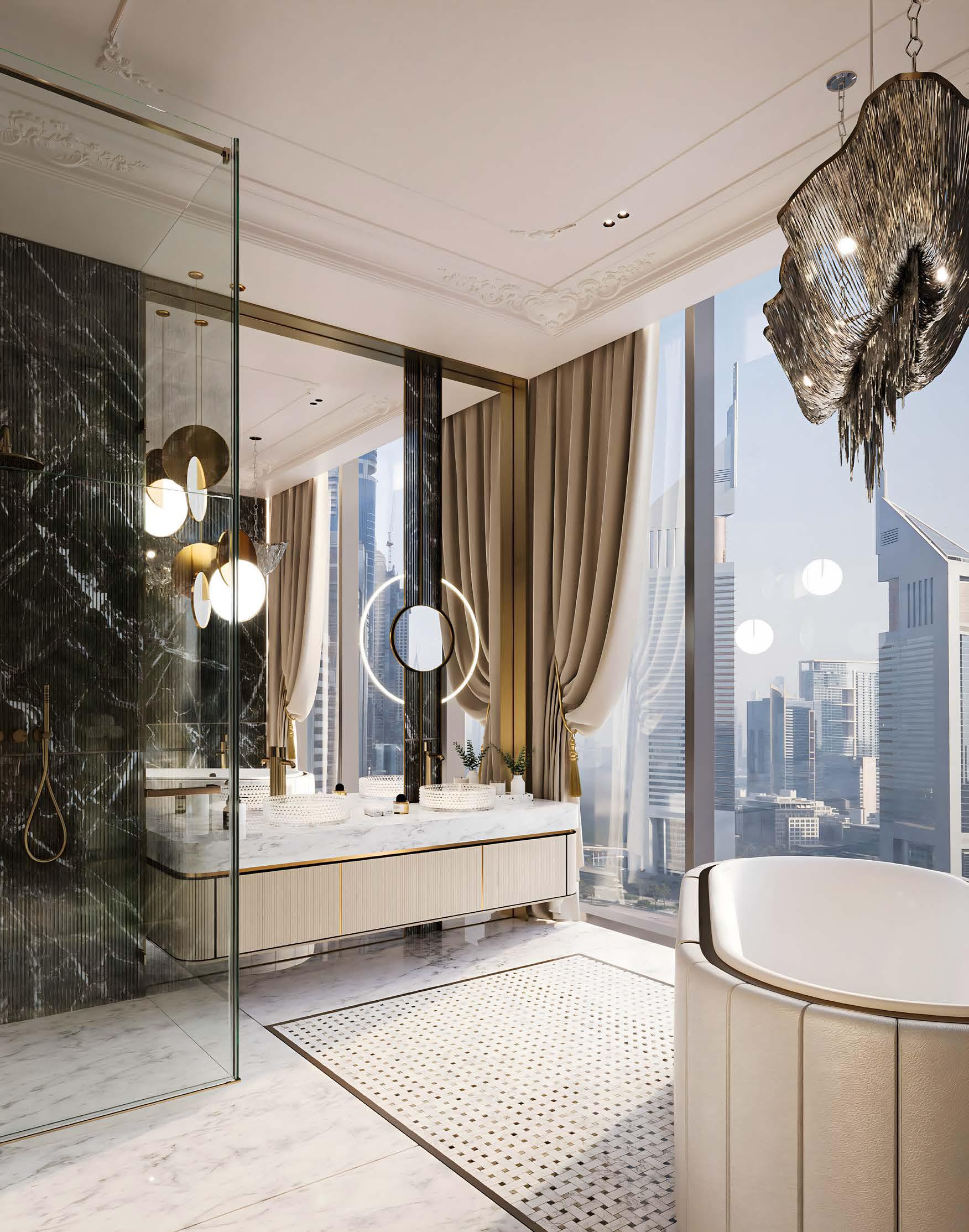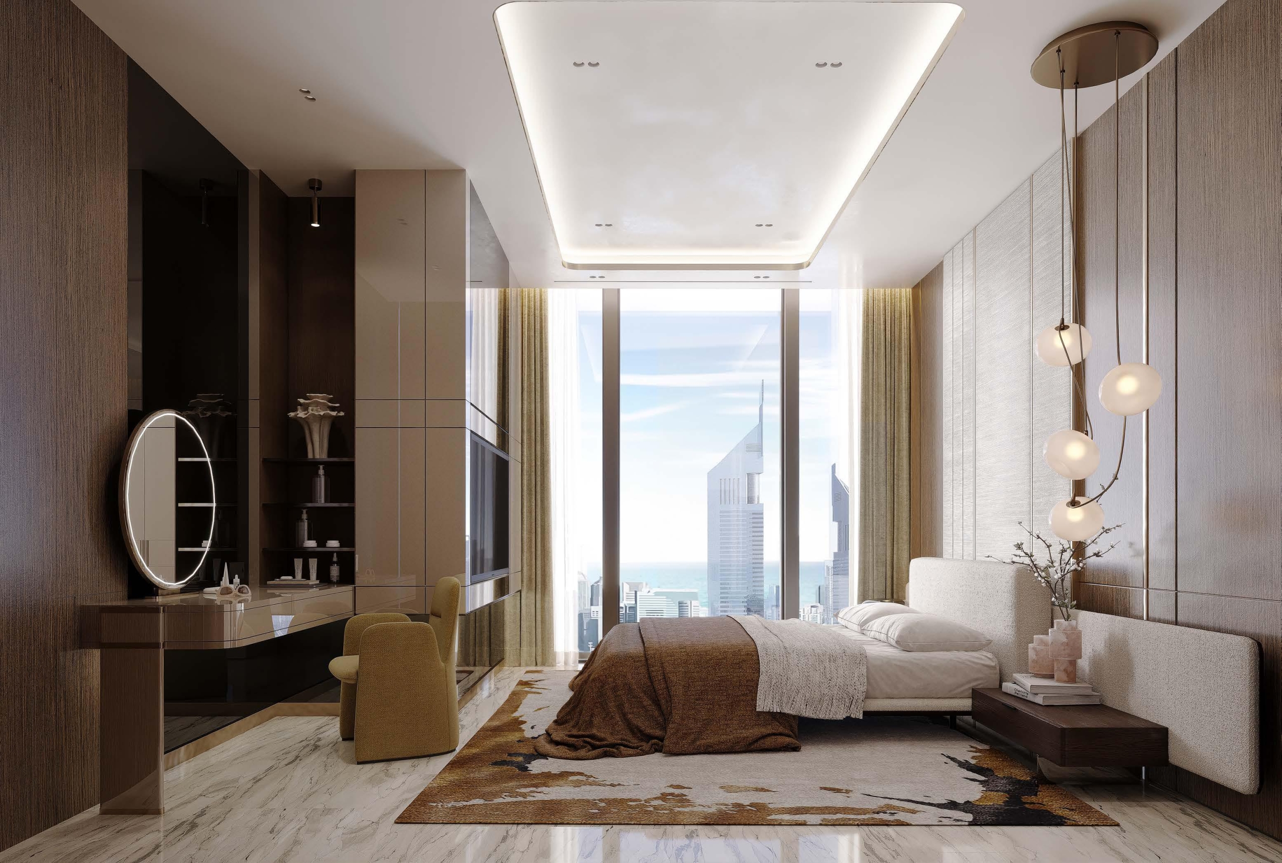 Floors 14-53 (apart-hotel) – 1-2 bedroom units, 18 apartments per floor; Floors 54-69 (apartments) – 1-3 bedroom units; Floor 72 and above – 3, 4, 5 bedroom penthouses.
