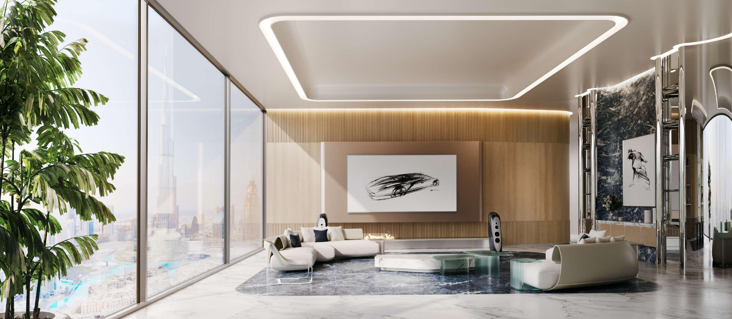 Bugatti Residences By Binghatti is an ultra-luxury residential complex in Business Bay and the world’s first Bugatti-branded project. The tower comprises four basement levels, a ground floor, the podium floor with amenities, 45 residential floors, and a rooftop. The building features a wave-like façade inspired by the elegance of the French Riviera and signature Bugatti elements. The interiors are designed with refined aesthetics, premium materials, and meticulous attention to detail.