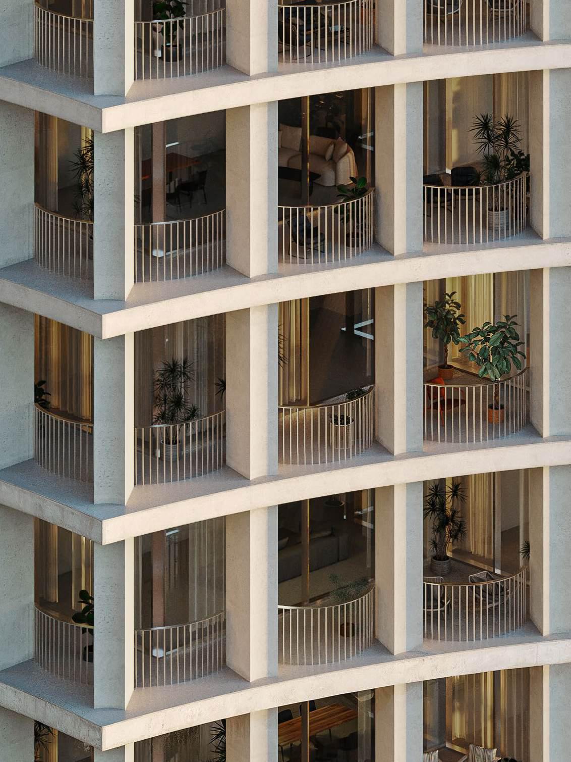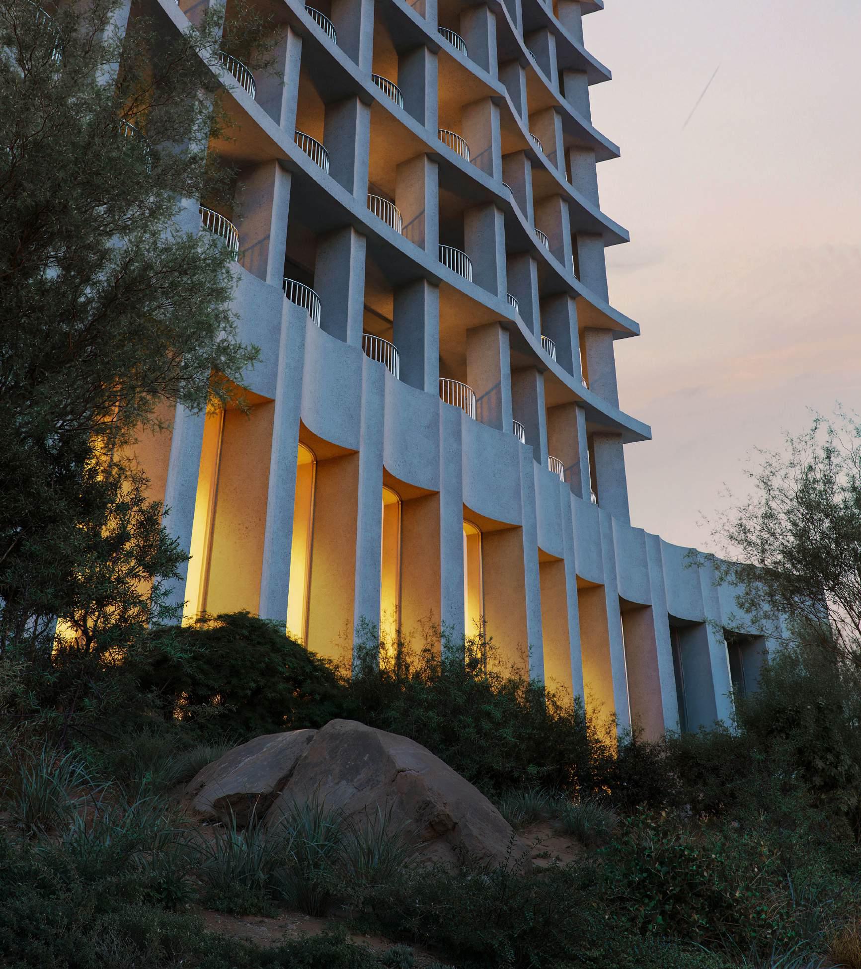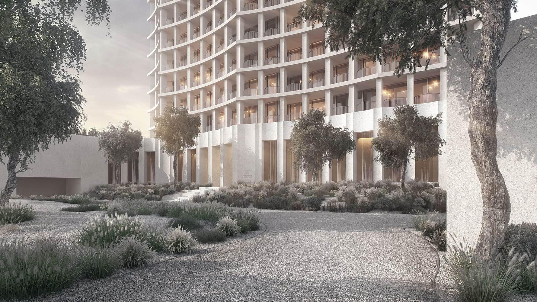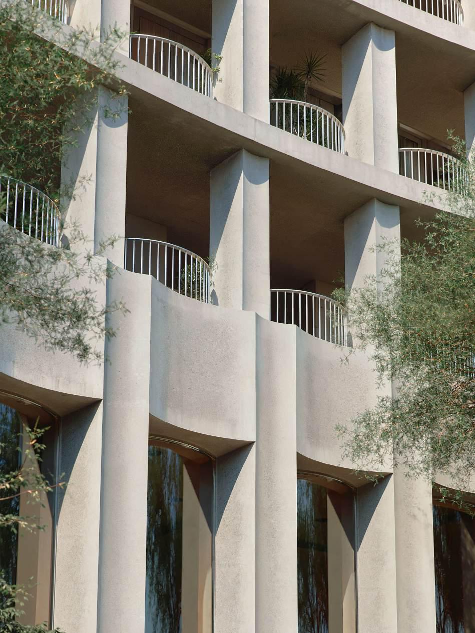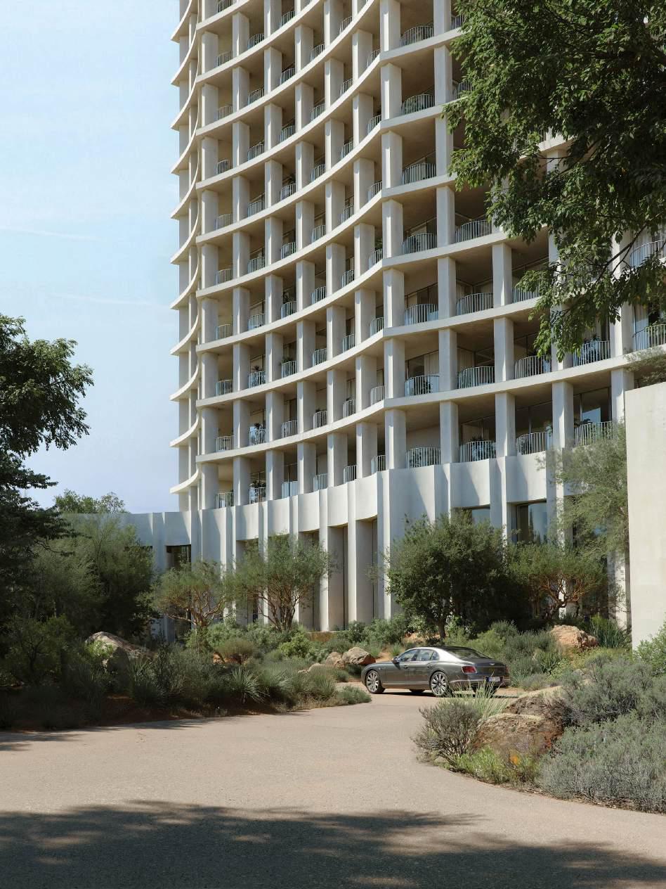 The architectural appearance of Eden House Za’abeel is a sculptural concrete form with landscaping elements. The building was developed by DXB Lab and the interior design is by Tristan Auer. Special attention is paid to harmonizing with the environment and creating an atmosphere of tranquility.