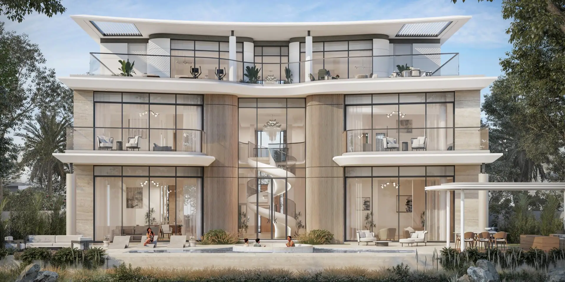 The Clubhouse Pavilion features exclusive facilities such as “The Club” – an entertainment space, “The Library” – an executive lounge named after Karl Lagerfeld’s passion for books and libraries, a gym, children’s and adult pools surrounded by stunning landscapes.