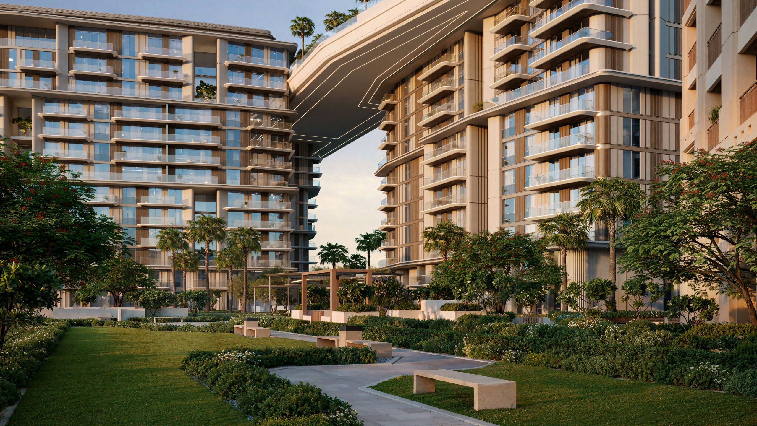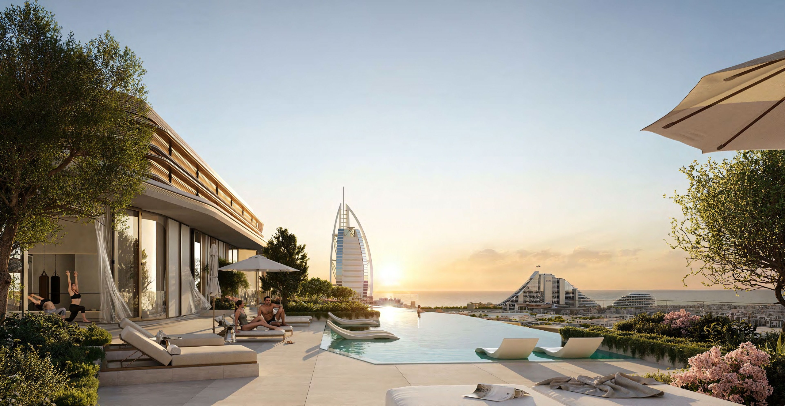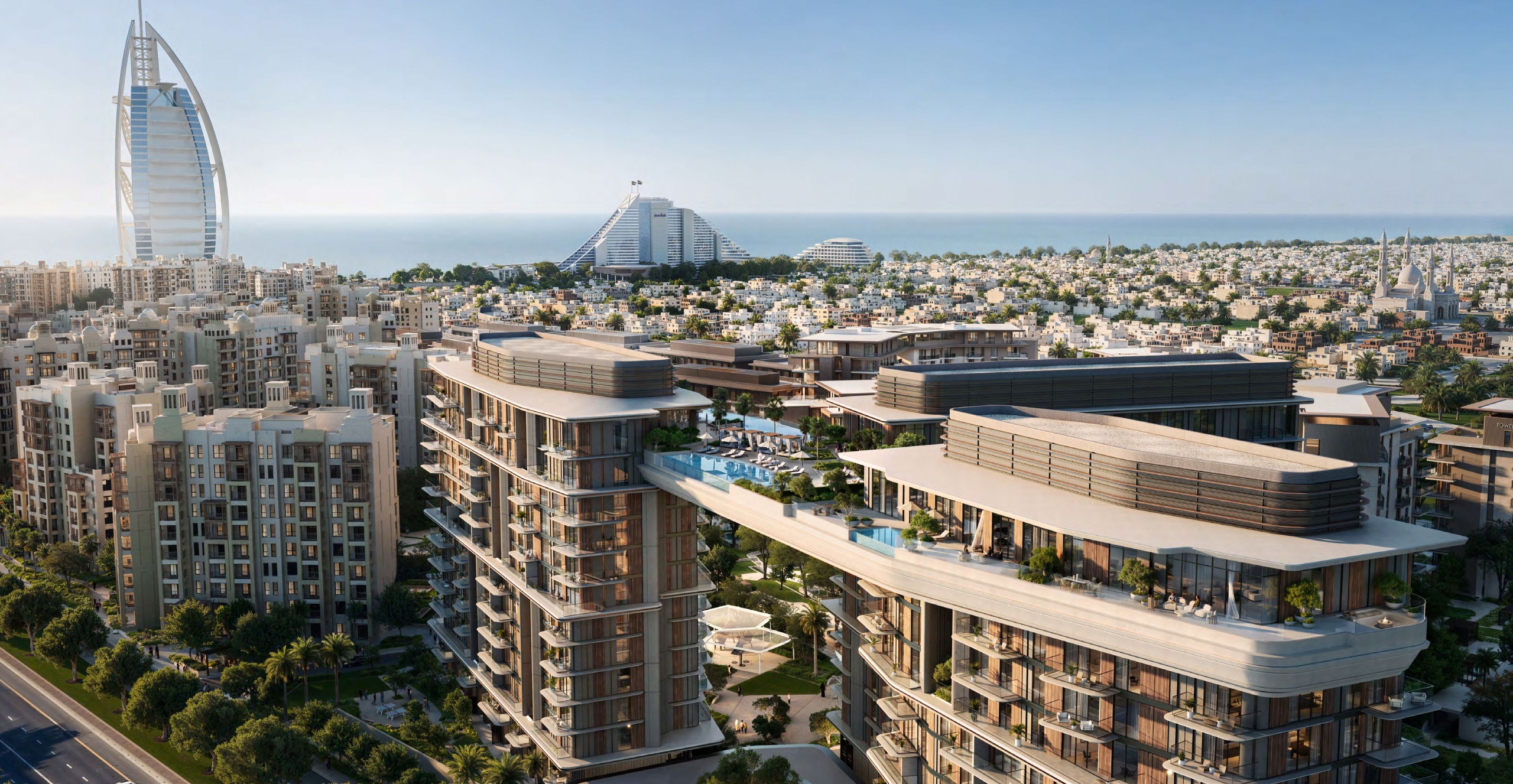 A diverse range of buildings with varying heights Multiple convenient entrances and exits. Minimal traffic and reduced ambient noise. A family-friendly, pedestrian-oriented environment that is safe for children. Daycare centres, play areas, gyms, swimming pools, community stores, and pocket parks. Panoramic views of Jumeirah Burj Al Arab, the pool deck, and the city skyline throughout the community masterplan.