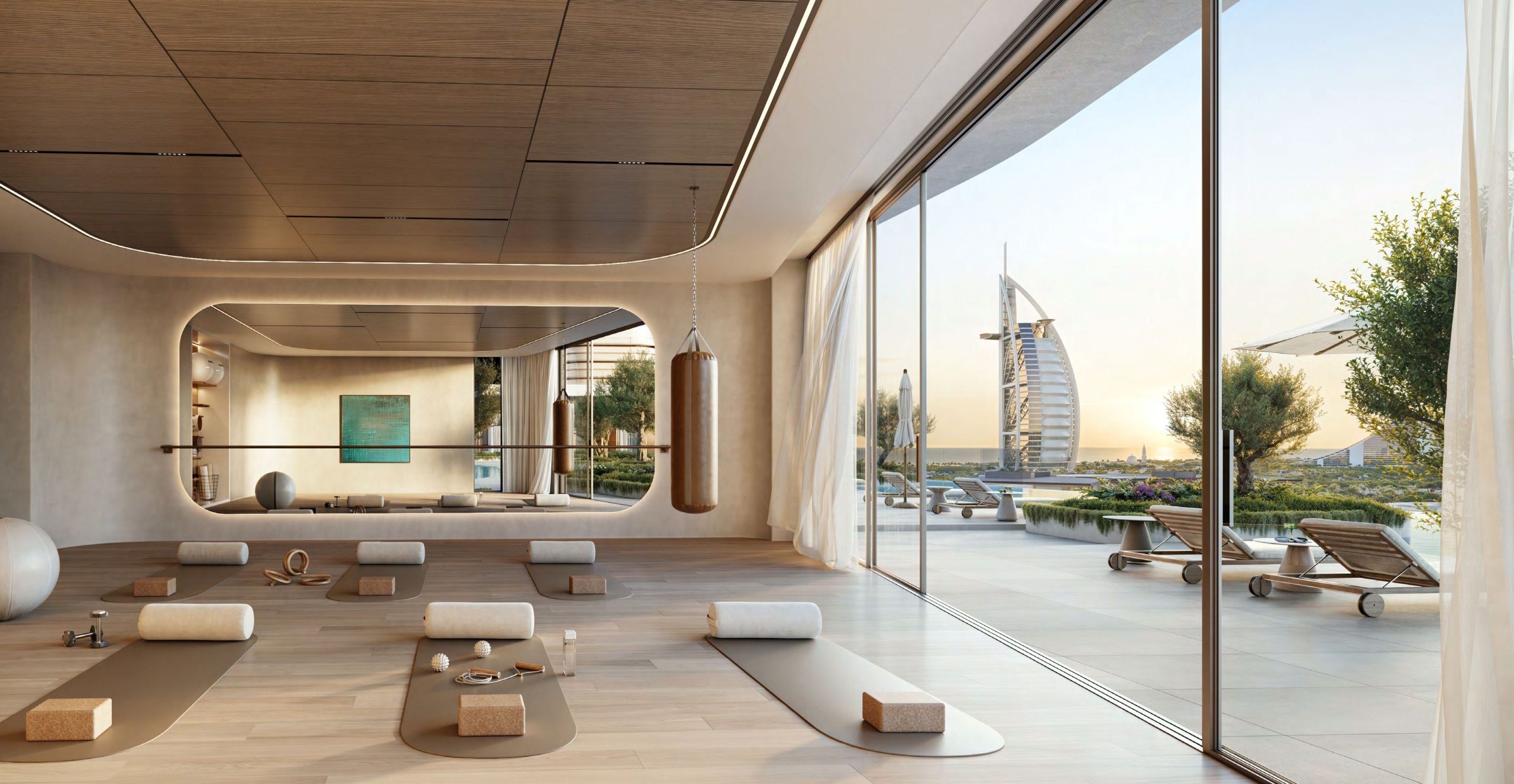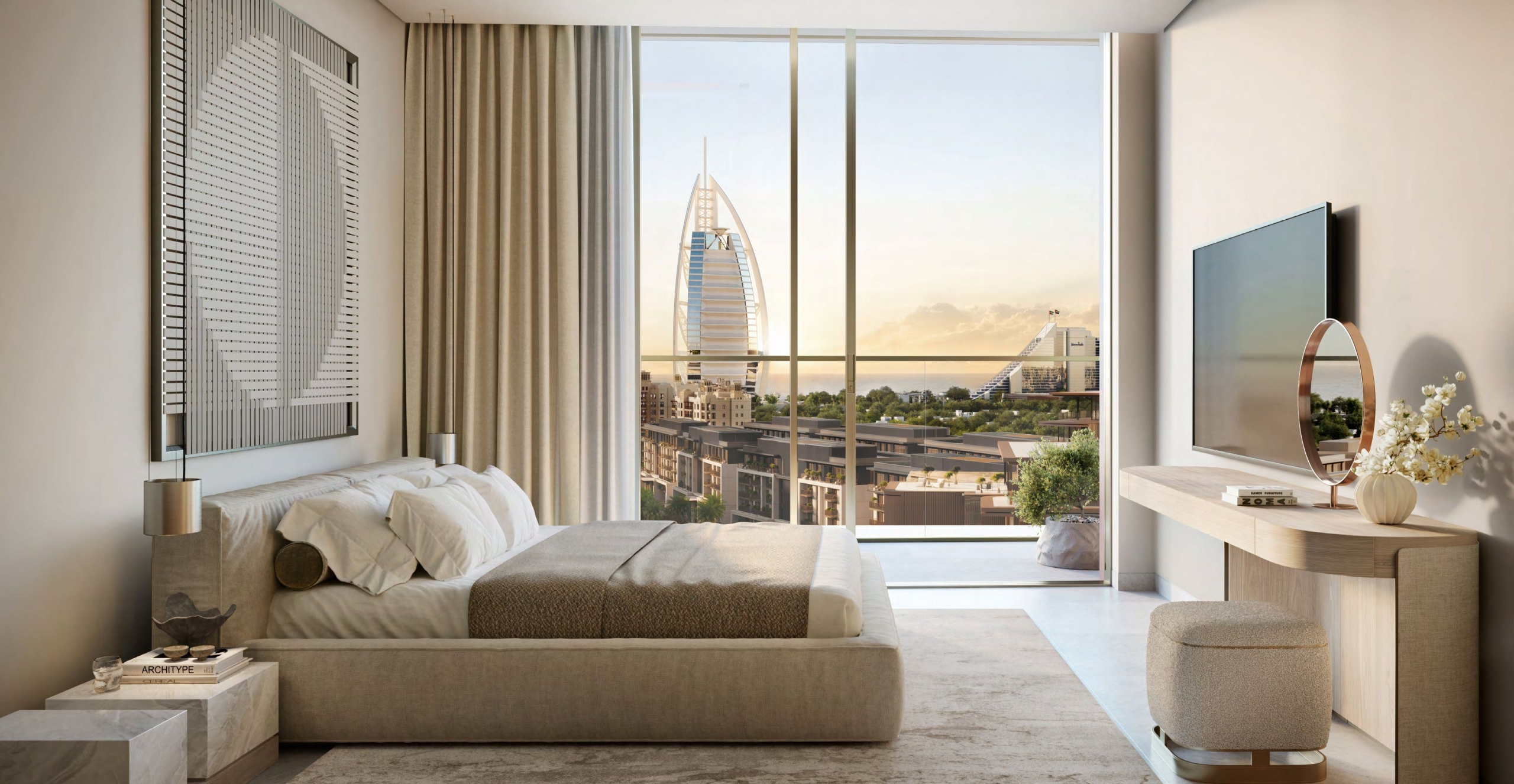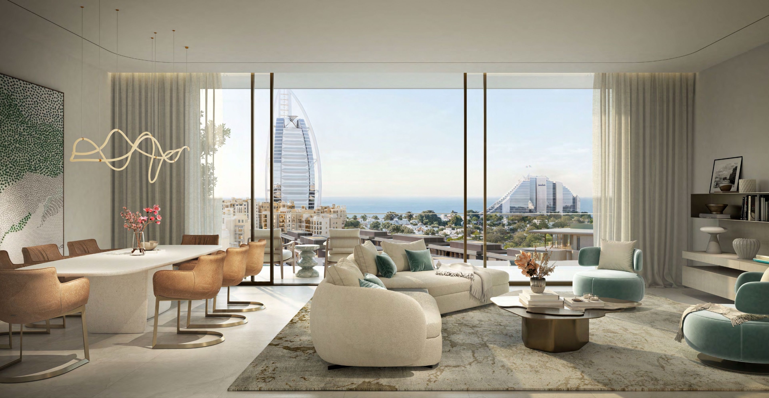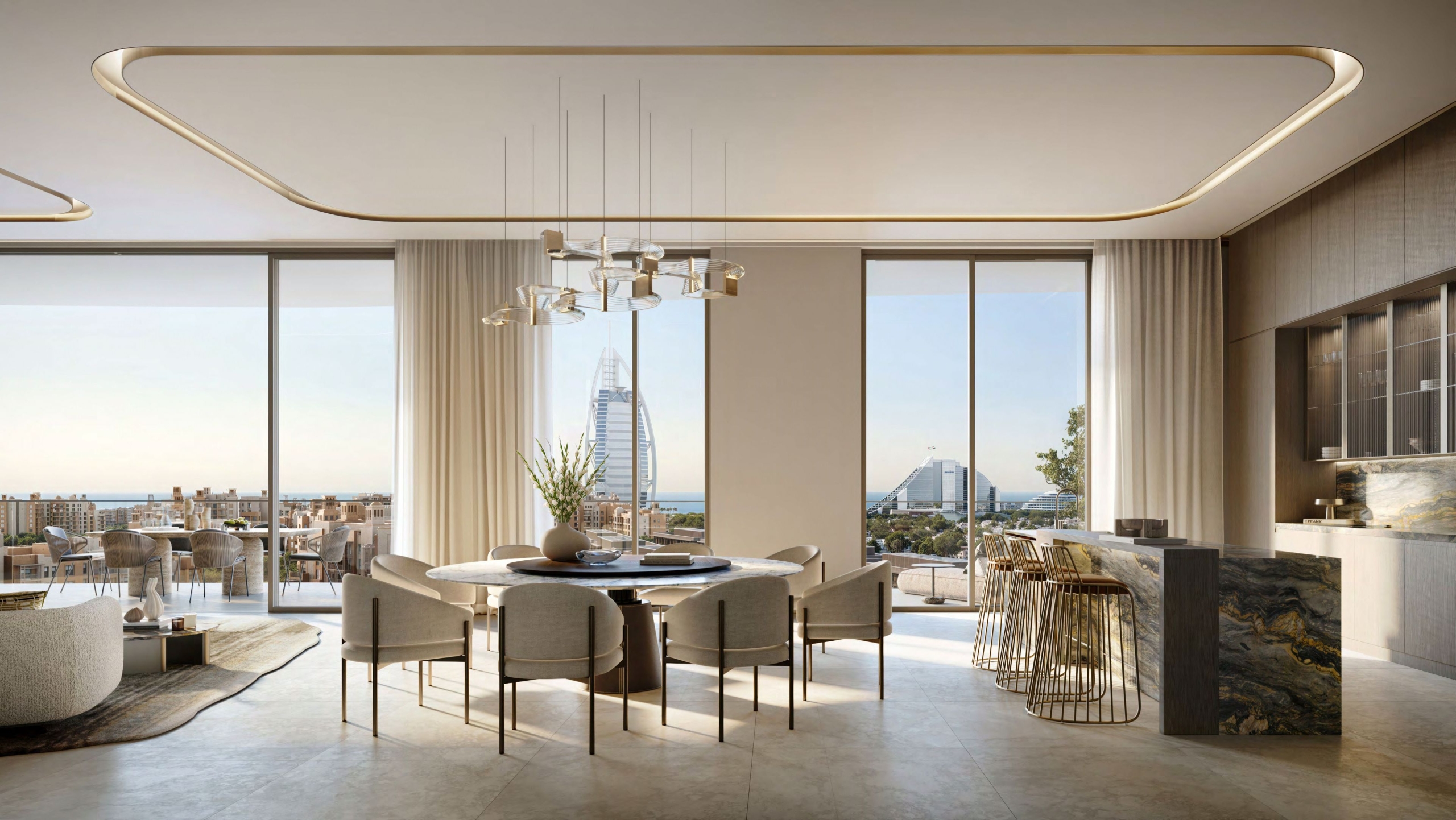A diverse range of buildings with varying heights Multiple convenient entrances and exits. Minimal traffic and reduced ambient noise. A family-friendly, pedestrian-oriented environment that is safe for children. Daycare centres, play areas, gyms, swimming pools, community stores, and pocket parks. Panoramic views of Jumeirah Burj Al Arab, the pool deck, and the city skyline throughout the community masterplan.