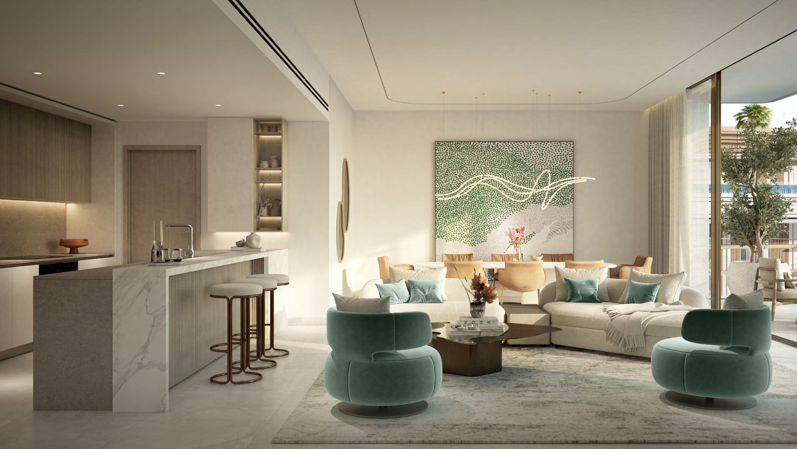 Nourelle is the latest development launched by Meraas. The project consists of 3 interconnected buildings are unified by a sculptural skybridge, forming a landmark silhouette on the city skyline. Contemporary façades feature elegant cut-outs integrated with greenery, creating a refined and dynamic visual identity. Entrance lobbies, lounges, lift cabins, and floor lobbies are designed with modern elegance, combining refined materials to create a welcoming atmosphere. All residences are finished with modern interiors, curated to deliver both style and comfort. The landscape, from the feature drop-off to the elevated sky gardens, complements the architecture across every level. Unit layouts are carefully planned to maximise premium views in all directions. Wellness amenities include infinity pools, a gym, yoga areas, children’s play areas, and sky gardens with vistas of Jumeirah Burj Al Arab.