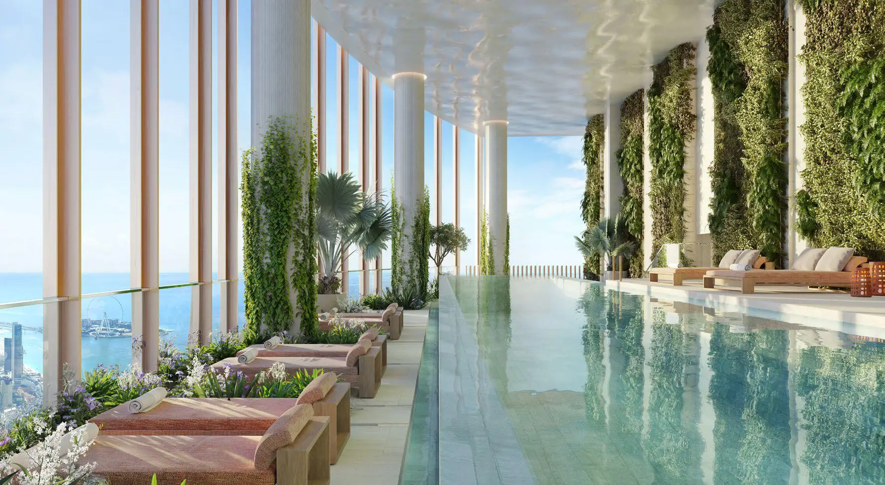 Residents have access to concierge, maid, maintenance, security and valet services, as well as amenities on four levels. At the “Connectivity” level, there are entertainment and work spaces; at the “Balance” level, you can engage in fitness and wellness in the spa, gym and panoramic pool; at the “Longevity” level, there are various wellness treatments, state-of-the-art gyms and studios for virtual training. On the 109 th floor, at the Horizon level, there is a pool lounge area, a 25-meter pool, landscaped gardens and dining areas.
