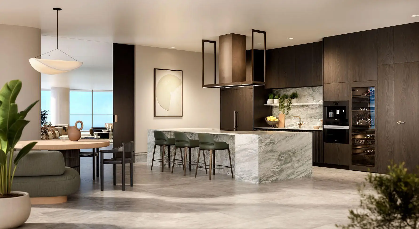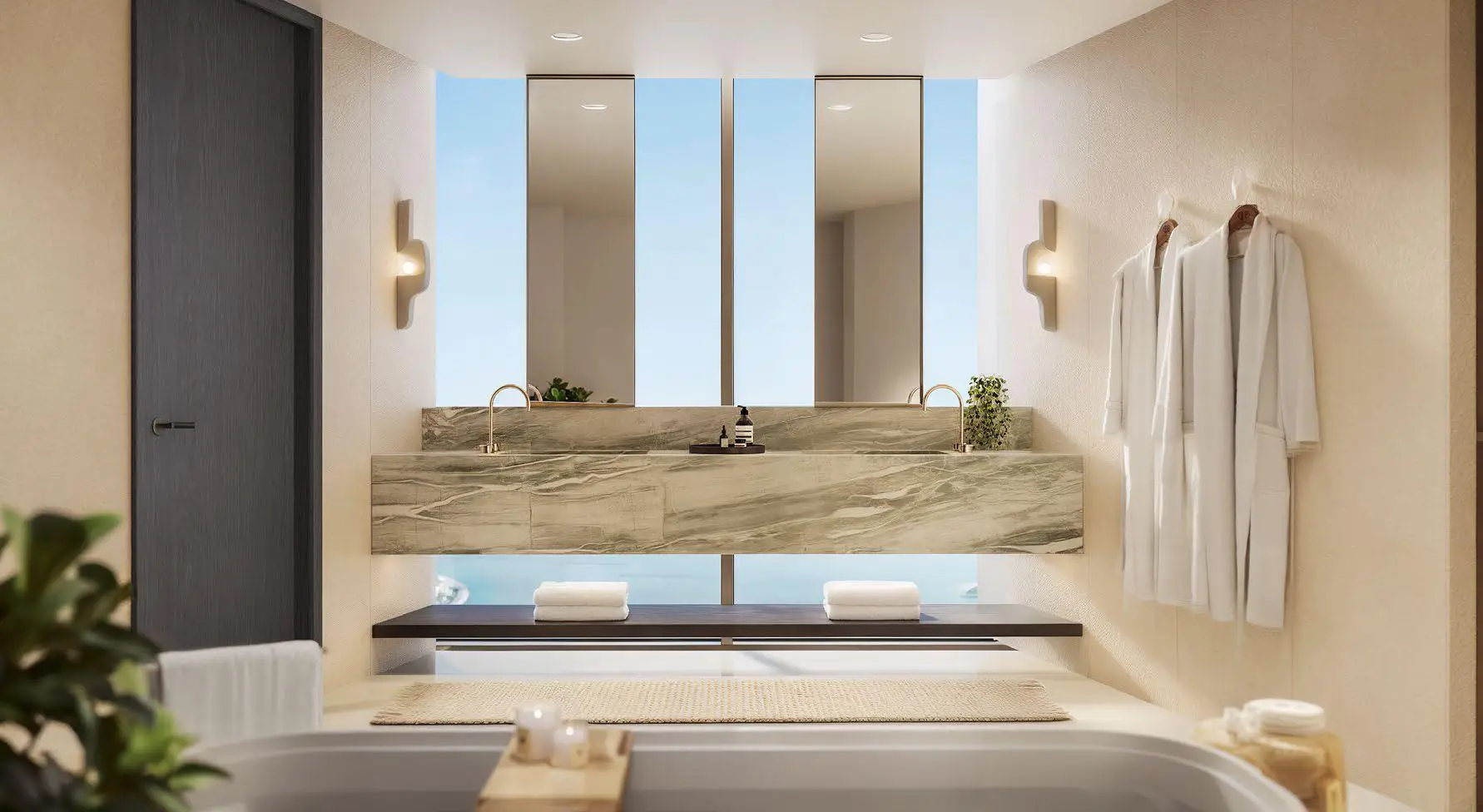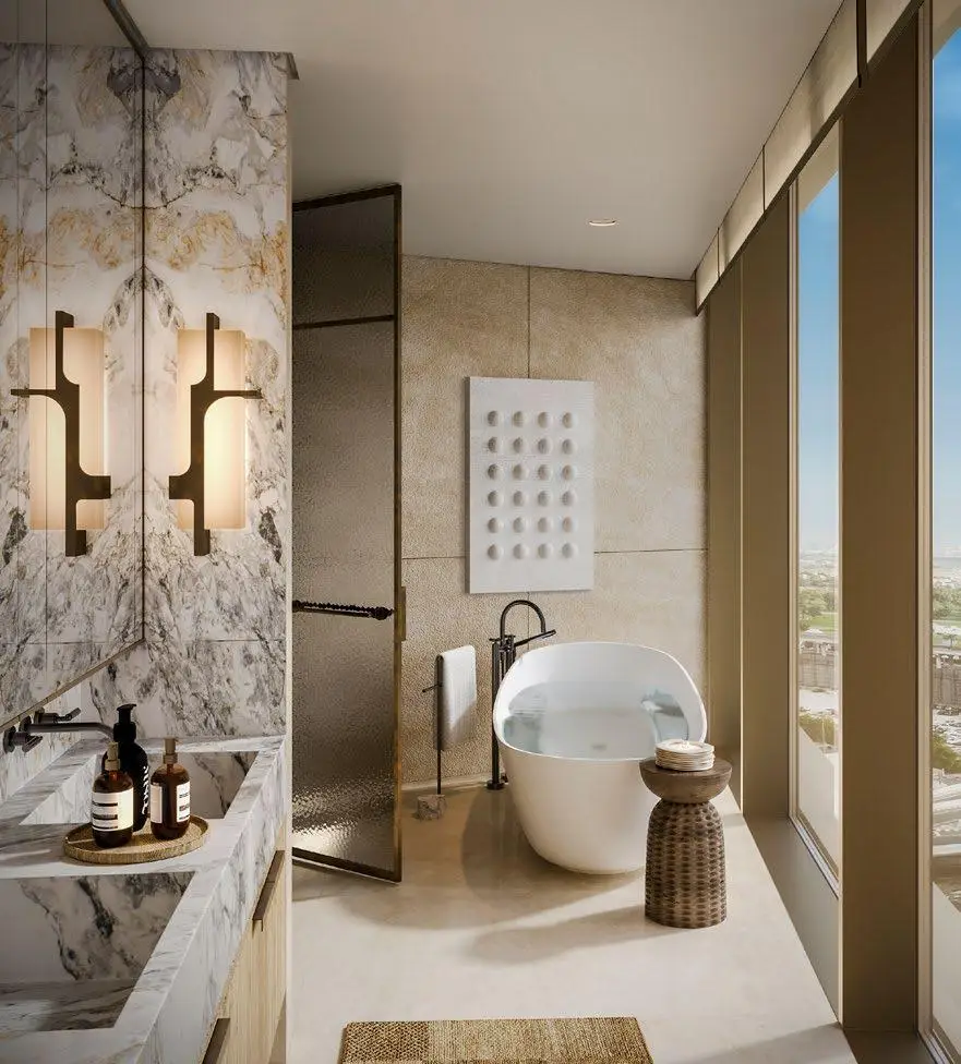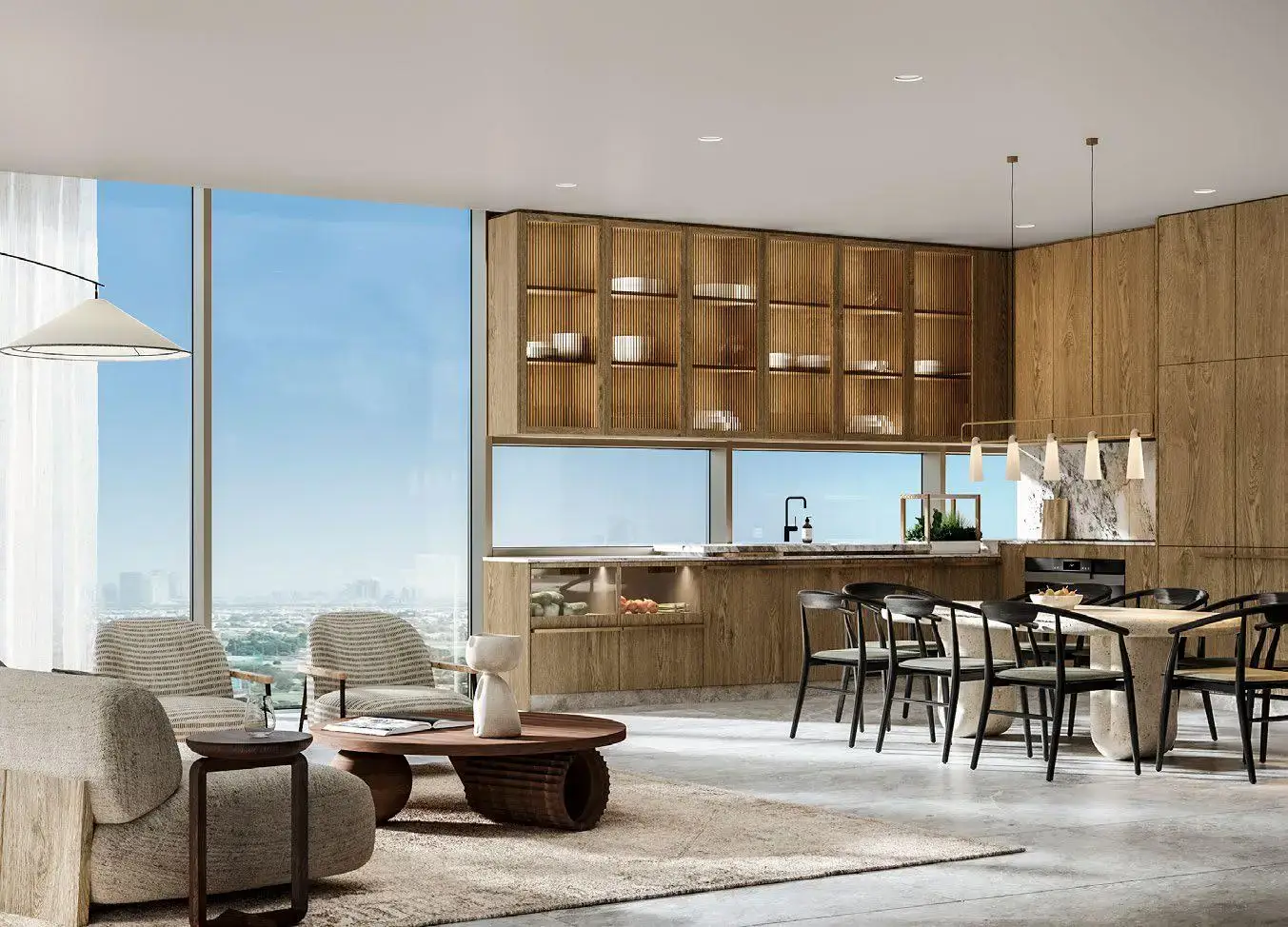 Residents have access to concierge, maid, maintenance, security and valet services, as well as amenities on four levels. At the “Connectivity” level, there are entertainment and work spaces; at the “Balance” level, you can engage in fitness and wellness in the spa, gym and panoramic pool; at the “Longevity” level, there are various wellness treatments, state-of-the-art gyms and studios for virtual training. On the 109 th floor, at the Horizon level, there is a pool lounge area, a 25-meter pool, landscaped gardens and dining areas.