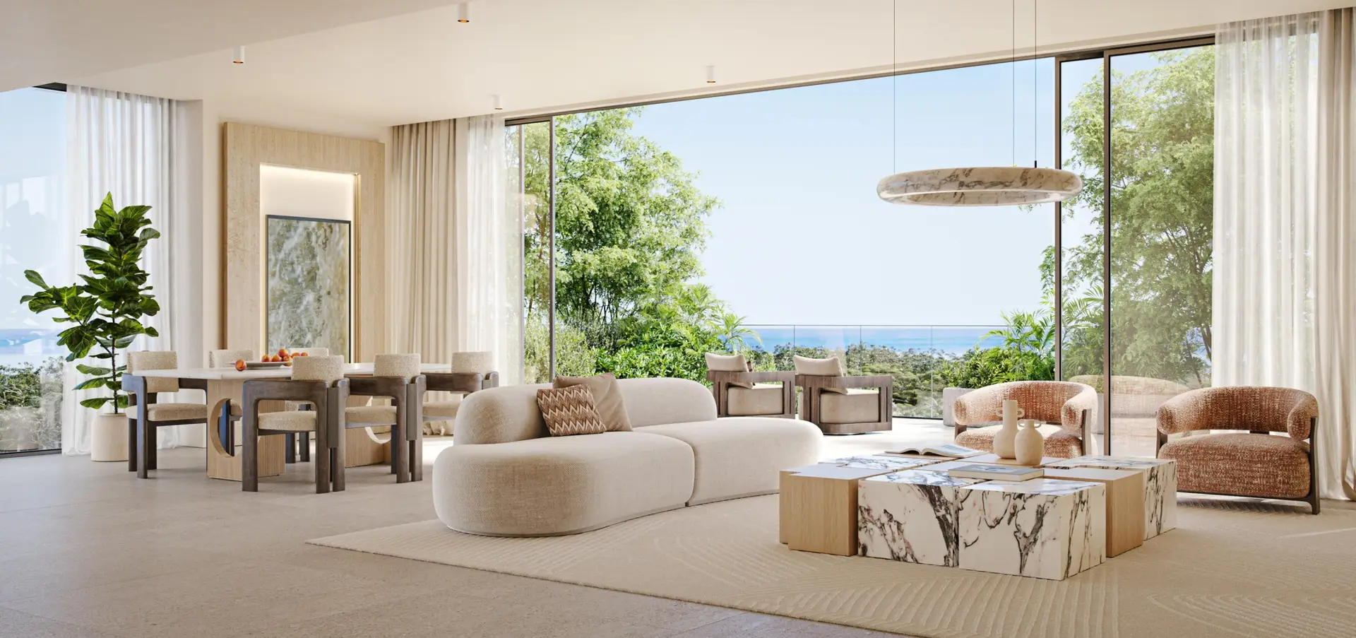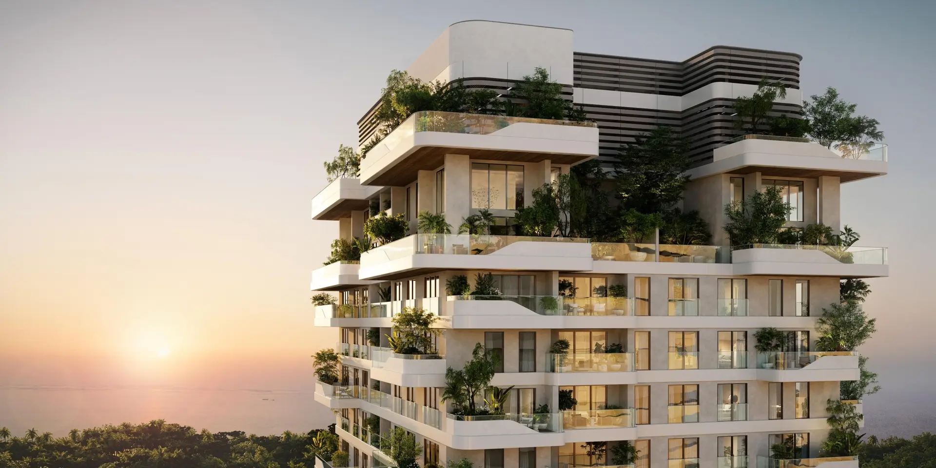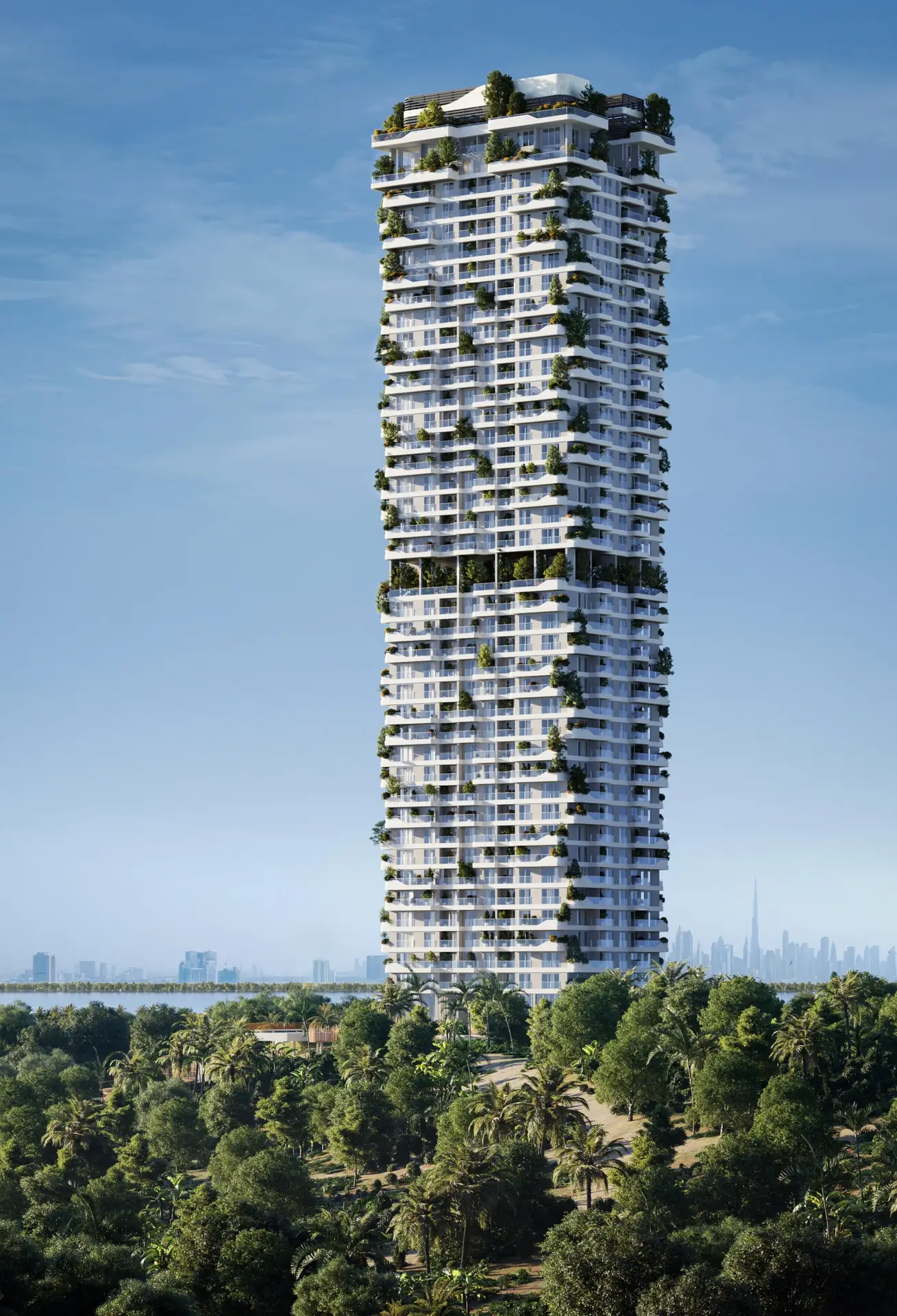 Talea is a residential project in the heart of Dubai Maritime City that embodies the concept of biophilic design. The tower includes a carefully designed structure of levels: ground floor, three podium floors, a mezzanine level, and above that 39 residential floors, which house apartments with views of Port Rashid, The World Islands and the green Forest District. The exterior is a unique fusion of nature and architecture: the building seems to “grow” from the earth, repeating the organic forms of nature. Vertical gardens, green terraces and facades framed by glass create a sense of living between heaven and earth. The project offers: cozy one-bedroom, spacious two- and three-bedroom residences, as well as exclusive four-bedroom penthouses. Each space is designed with functionality and aesthetics in mind. The interiors are filled with natural light thanks to panoramic floor-to-ceiling windows. Natural materials, calm color palettes and tactile textures create an atmosphere of comfort and restoration. Key amenities at Talea include: landscaped park with walking trails, fitness center, yoga and meditation areas, swimming pools, outdoor lounge areas, 24-hour security, reception, etc.