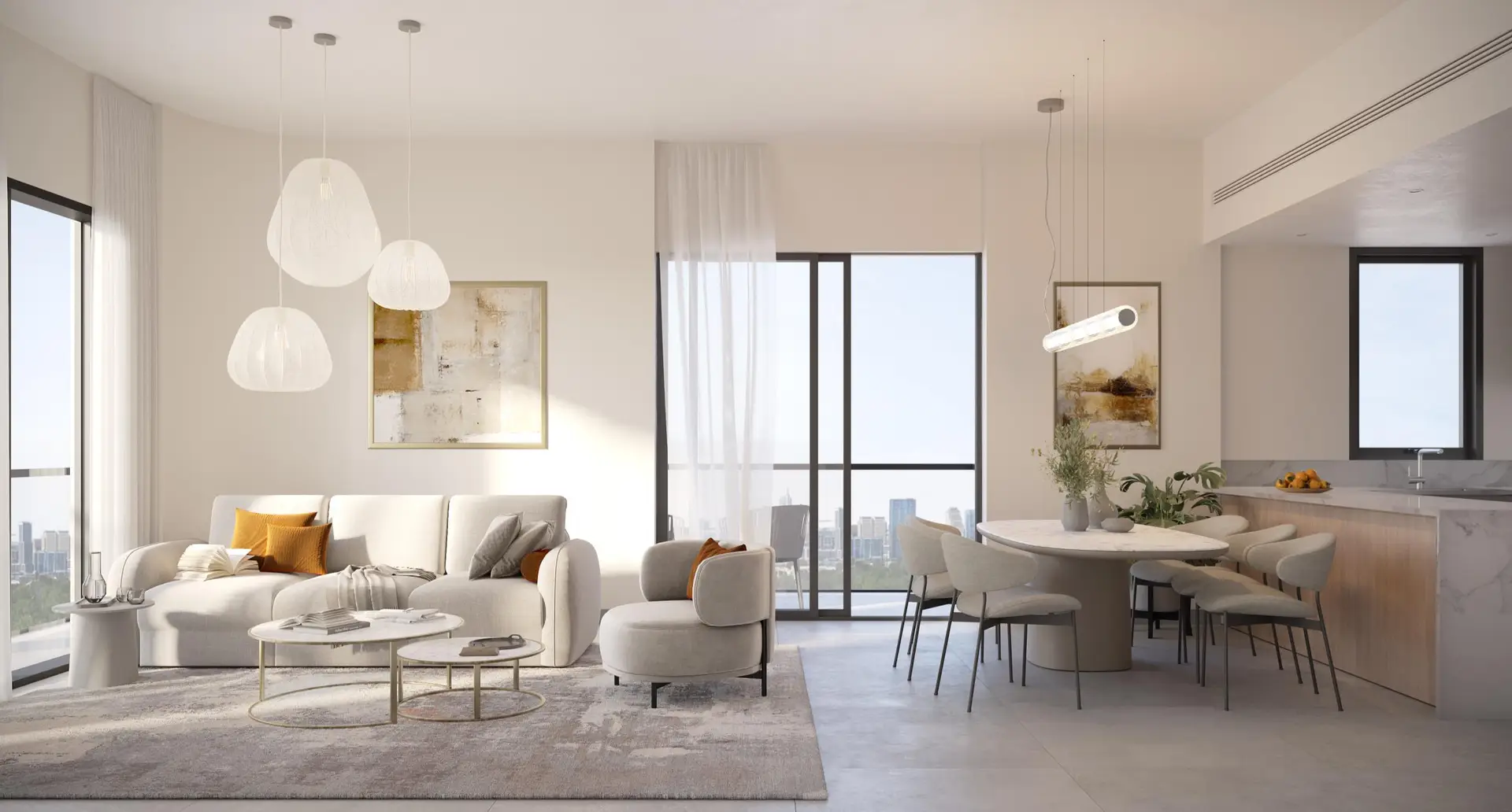 Cello is a stylish project by developer Taraf, located in the JVC area. The complex consists of two towers, A and B. Tower A has twenty-one residential floors and a ground floor. Tower B offers twenty-three residential floors and a ground floor. The panoramic towers highlight the elegance of modern architecture. Cello features studios, 1–3 bedroom apartments, and 4-bedroom penthouses. Attention to finishes ensures the perfect balance of functionality and atmosphere in every residence.