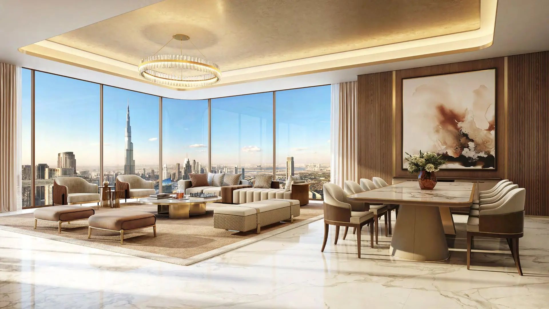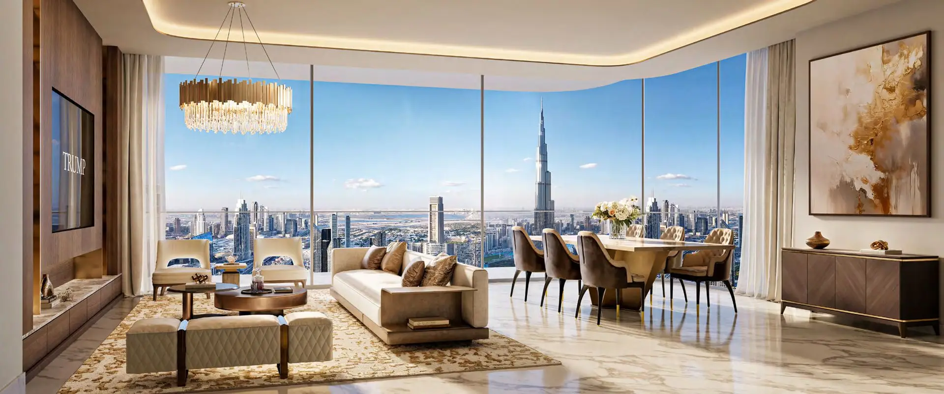 The building consists of a ground floor and 80 floors. Trump International Hotel & Tower Dubai features 1 -, 2-and 3-bedroom residences, as well as luxury 4-bedroom penthouses. Spacious interiors with high ceilings and individual finishes create an atmosphere of luxury. It offers breathtaking views of the glittering skyline, the majestic Burj Khalifa skyscraper or the endless sea. From private elevators to premium materials – everything is thought out to create the perfect living environment.